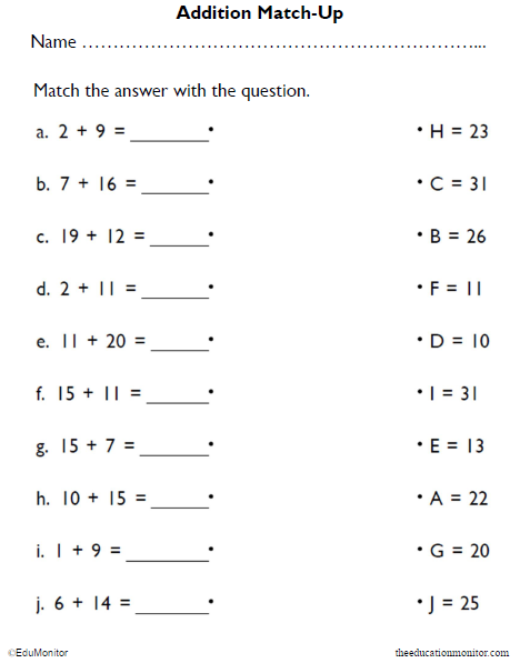 3rd Grade Addition Matching Math Worksheets. Find more math, language arts, reading, writing, social studies, and more worksheets on our online library. Download Now…