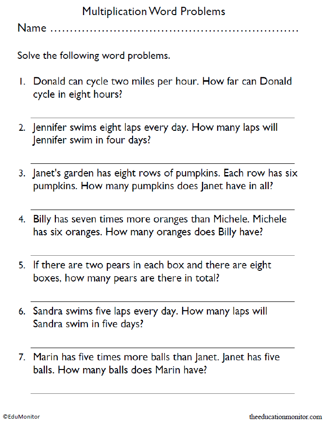 Fourth Grade multiplication word problems math worksheets are perfect math practice resources for your 4th grader. Find more in our online library. Download Now…