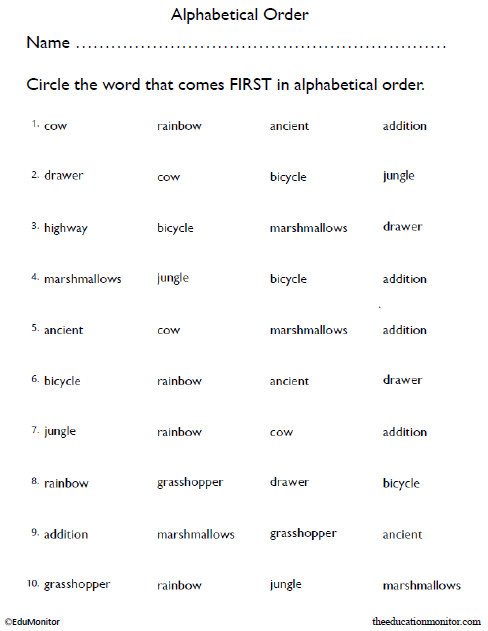 Grade 2 Alphabet Order Worksheet