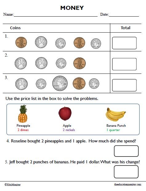 Money Worksheet for Grade 2
