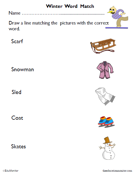 Preschool Winter Word Match Worksheets. Find holiday, seasonal, language arts, vocabulary, grammar, reading and writing, math, science, social studies worksheets and more on our online library. Download Now…
