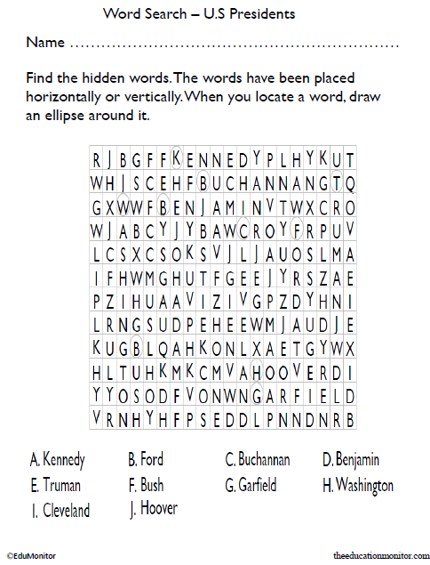 U.S Presidents Word Search Puzzle Worksheet 5th Grade