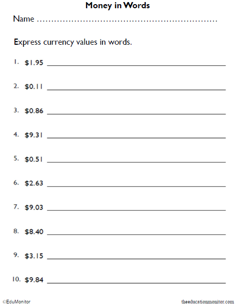 Writing Money in Words Math Worksheets. Find more math, language arts, reading, writing, social studies, and more worksheets on our online library. Download Now…